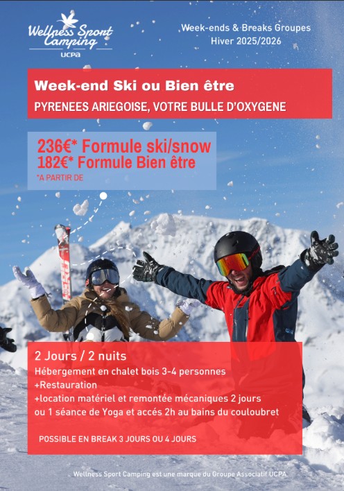 Fórmulas para grupos Wellness Sport Camping UCPA Ax-Les-Thermes ¡Ofrezca a sus equipos una escapada llave en mano en el corazón de los Pirineos! Estancias sencillas, revitalizantes y que fomentan el espíritu de equipo… ¡perfectas para sus grupos!