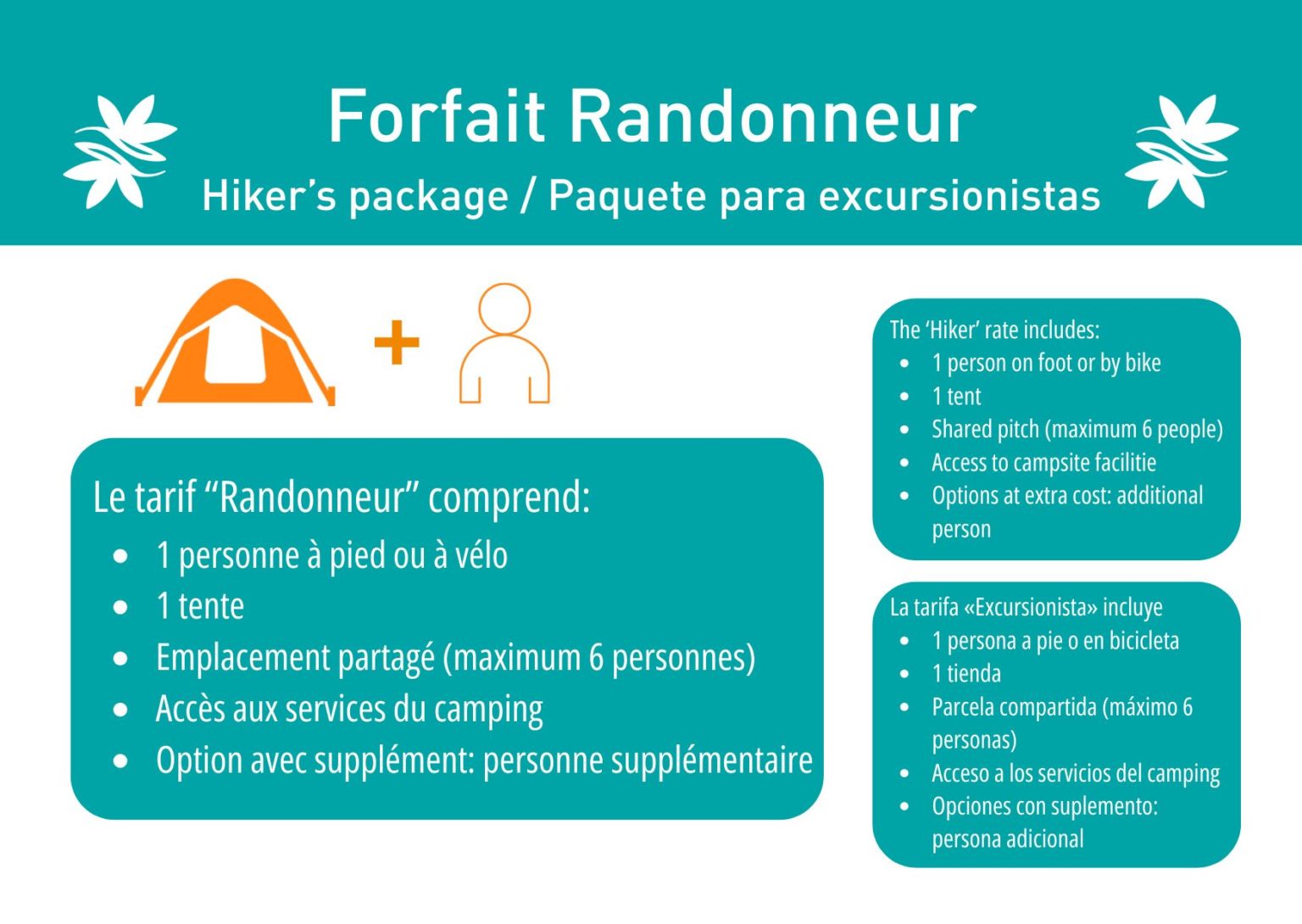 Emplacement RandonneurEmplacement pour 1 personne à pied ou à vélo + 1 tente