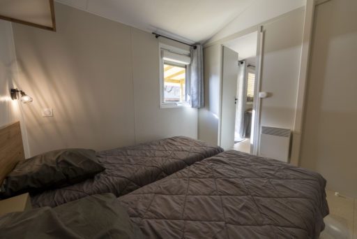 Mobil-home disposant 2 chambres avec 2 salles de bain idéales pour les couples d’amis. Chacun a son autonomie , son espace , sa propre salle de bain équipée d’une douche extra large et un wc indépendant.